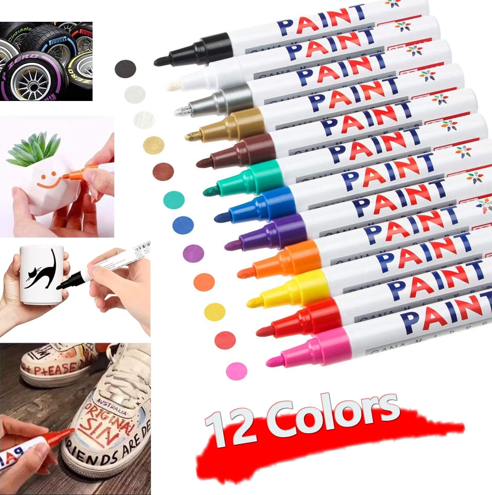 Feildoo 12 Pack Permanent Paint Pen Markers Oil Based Paint Marker Lasting Fast Drying Water And Sun Resistant Medium Point Vibrant Colors Assorted 12 Colors Walmart Com